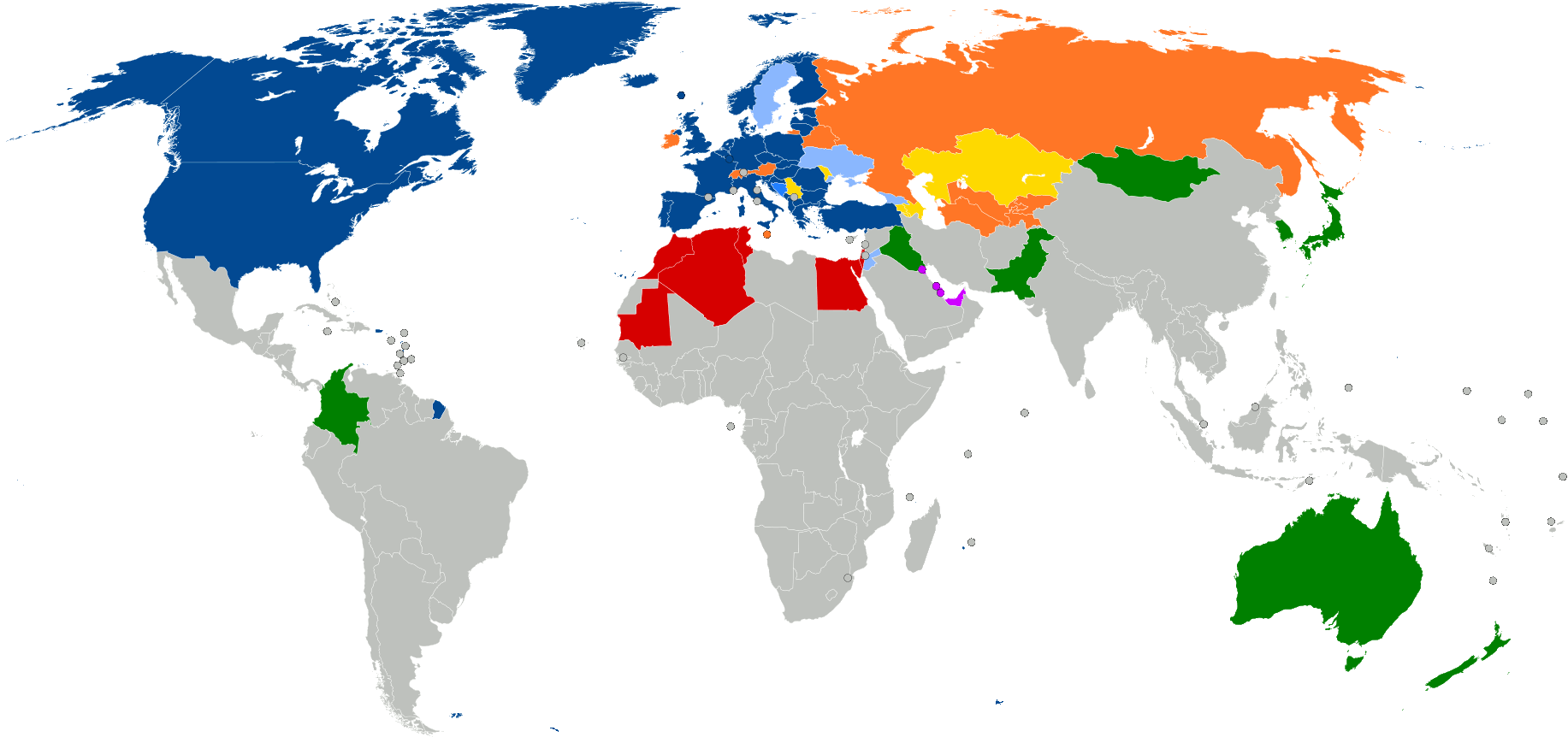 The North Atlantic Treaty Organization (French: Organisation du traité de l'Atlantique nord, OTAN), also called the North Atlantic Alliance, is an intergovernmental military alliance between 31 member states – 29 European and two North American. Established in the aftermath of